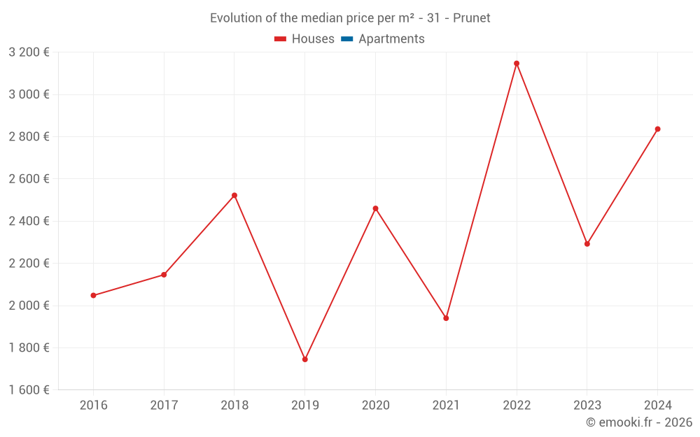 Real estate price map in the municipality of Prunet, choose a section to see transactions by parcel.