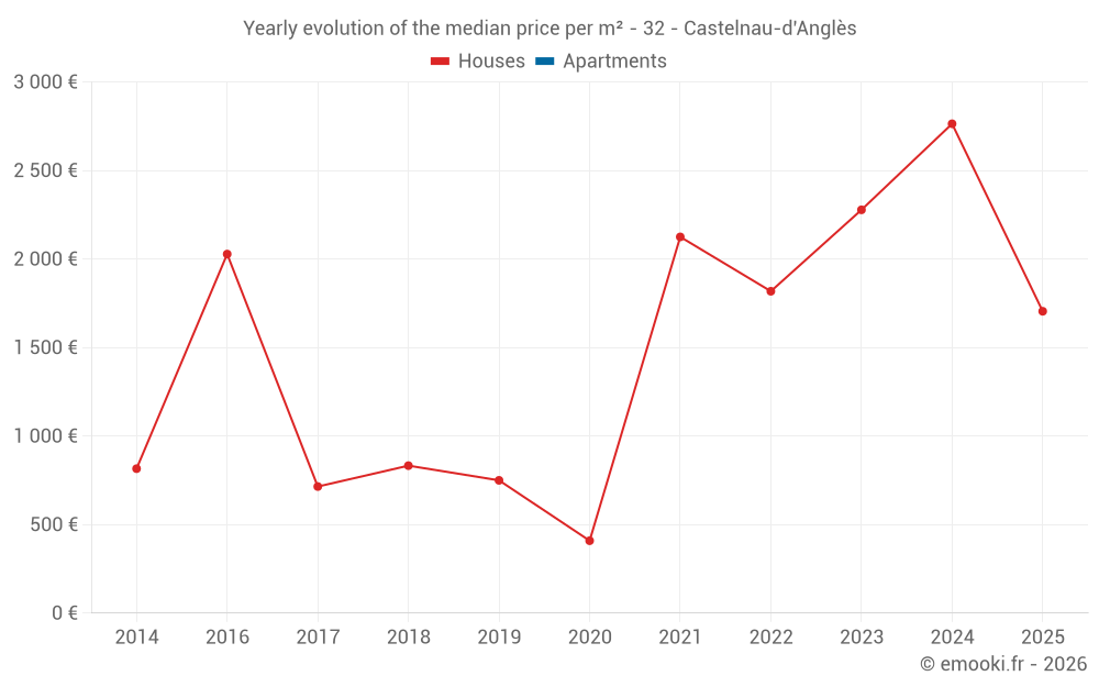 Evolution of the median price per m² of houses