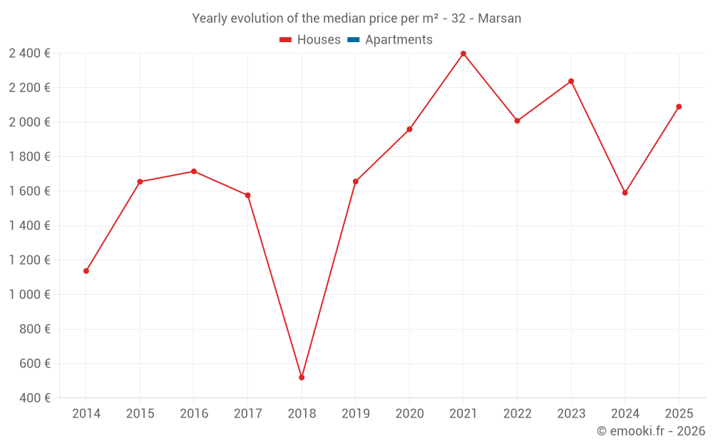 Real estate price map in the municipality of Marsan, choose a section to see transactions by parcel.