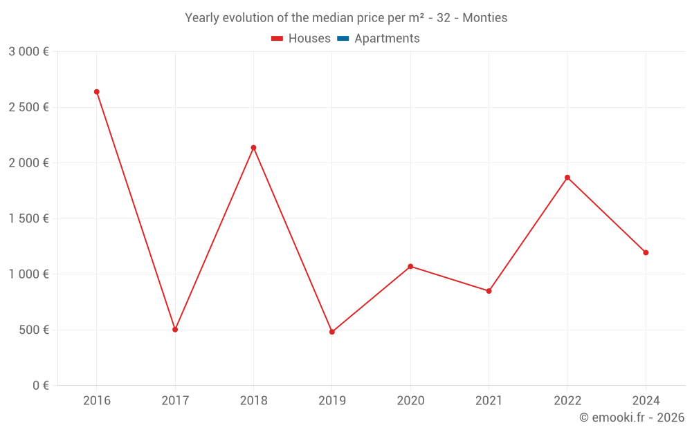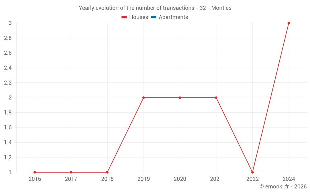 Real estate price map in the municipality of Monties, choose a section to see transactions by parcel.