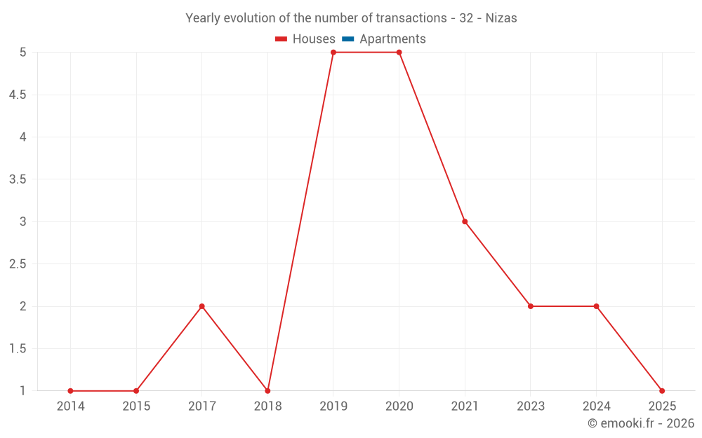 Real estate price map in the municipality of Nizas, choose a section to see transactions by parcel.