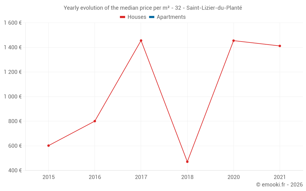 Evolution of the median price per m² of houses
