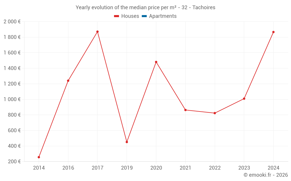 Real estate price map in the municipality of Tachoires, choose a section to see transactions by parcel.