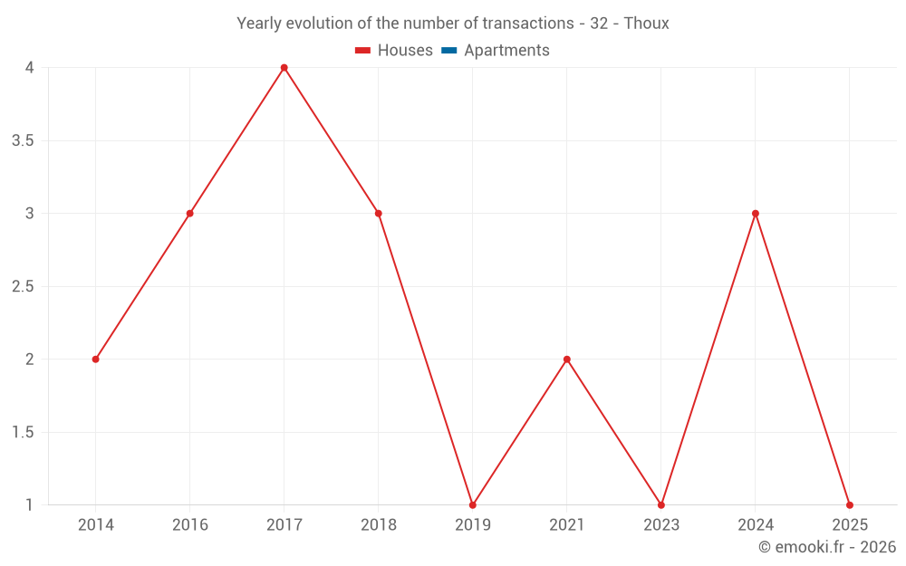 Real estate price map in the municipality of Thoux, choose a section to see transactions by parcel.
