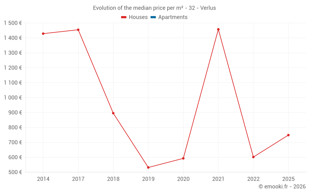 Real estate price map in the municipality of Verlus, choose a section to see transactions by parcel.