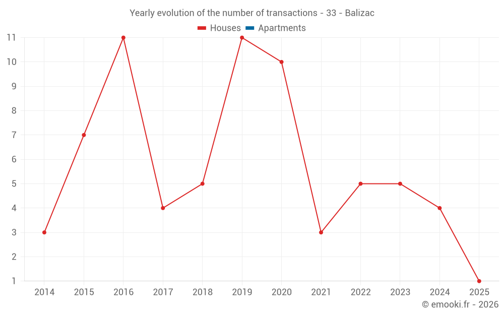 Real estate price map in the municipality of Balizac, choose a section to see transactions by parcel.