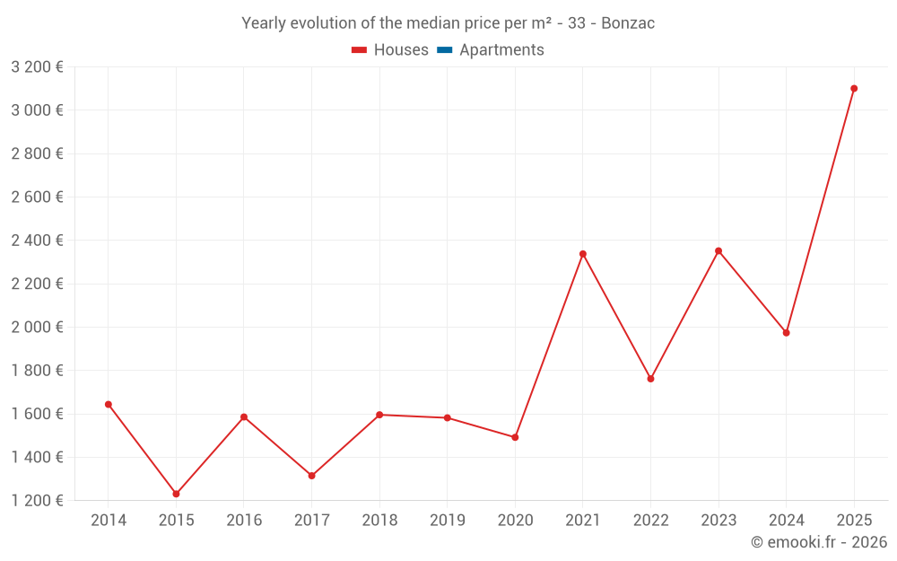 Real estate price map in the municipality of Bonzac, choose a section to see transactions by parcel.