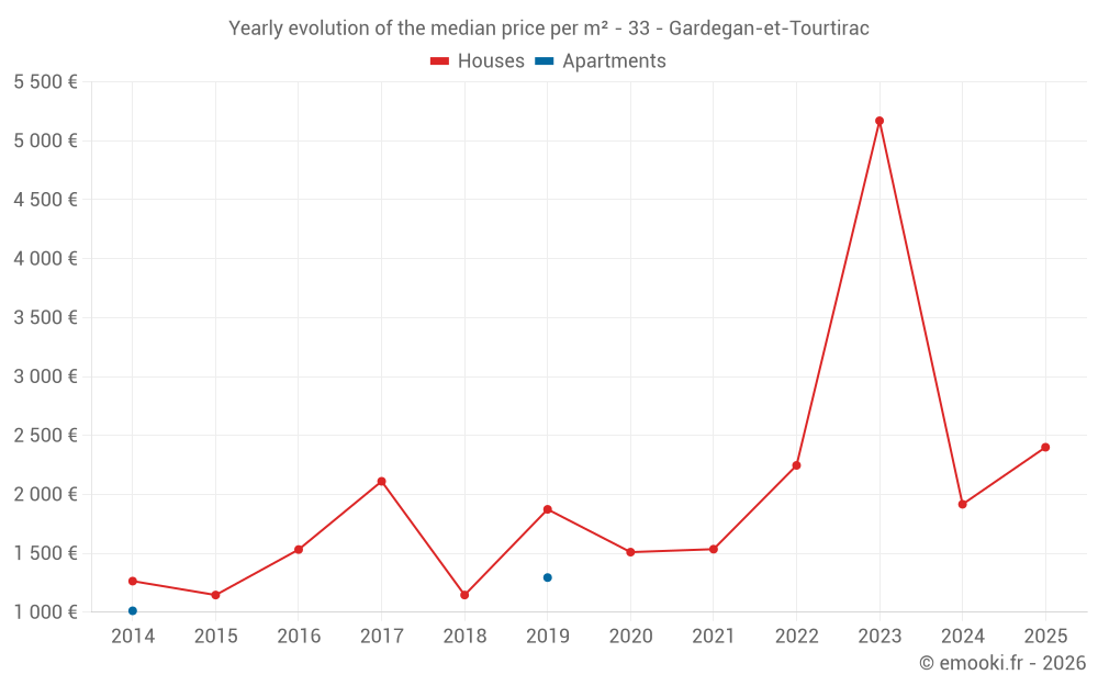 Real estate price map in the municipality of Gardegan-et-Tourtirac, choose a section to see transactions by parcel.