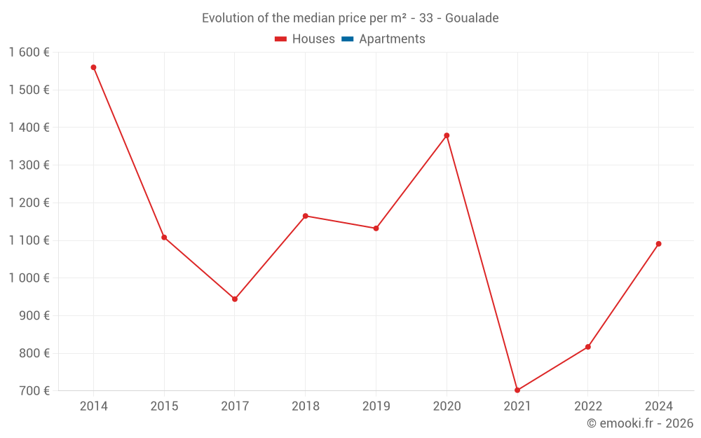 Real estate price map in the municipality of Goualade, choose a section to see transactions by parcel.
