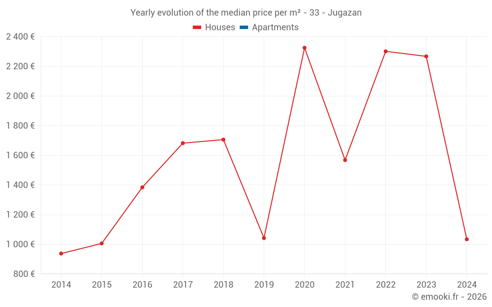Real estate price map in the municipality of Jugazan, choose a section to see transactions by parcel.