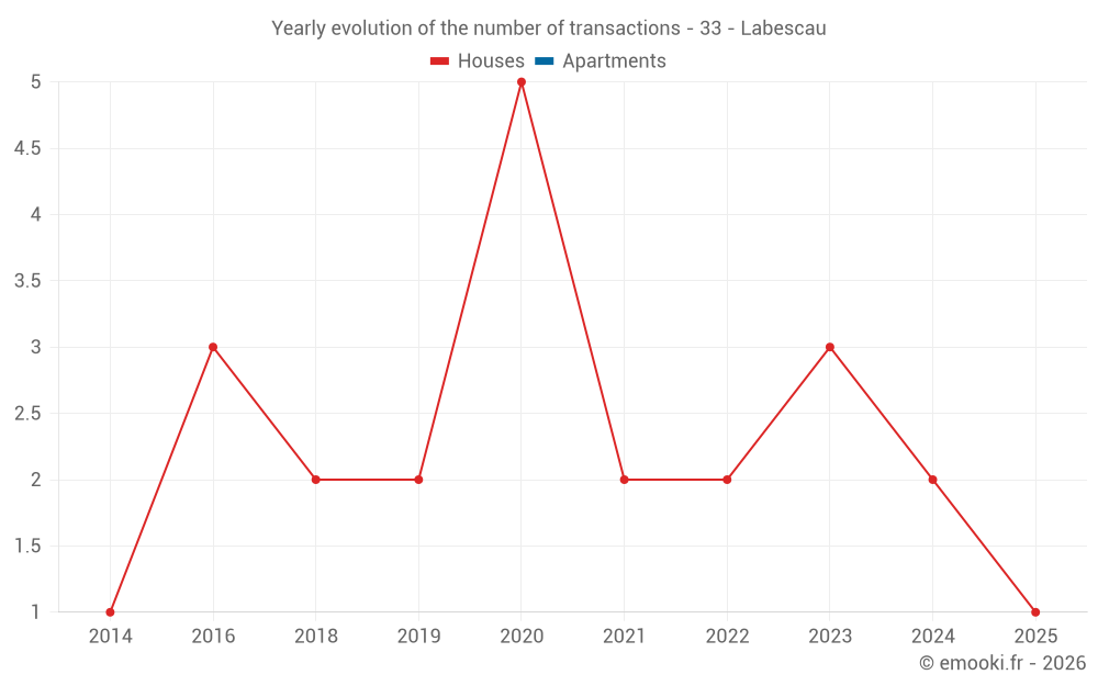 Real estate price map in the municipality of Labescau, choose a section to see transactions by parcel.