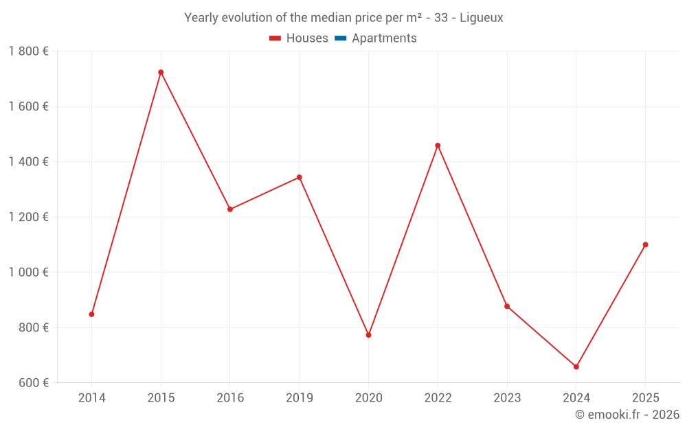Real estate price map in the municipality of Ligueux, choose a section to see transactions by parcel.
