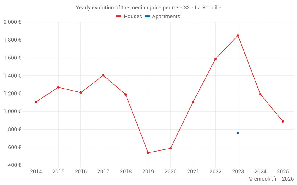 Real estate price map in the municipality of La Roquille, choose a section to see transactions by parcel.