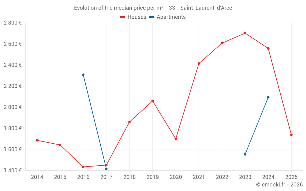 Median price on the 24 transactions of the last 24 months.