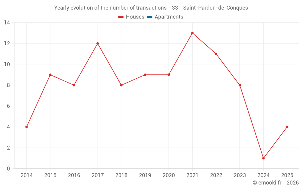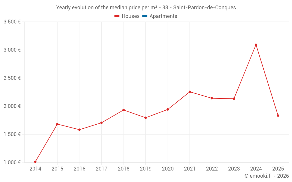 The price per m² of houses has decreased by 19% since 4 years, but it has increased by 81% in 11 years.