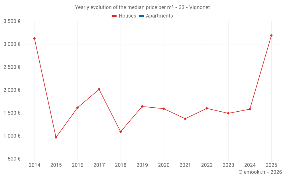Real estate price map in the municipality of Vignonet, choose a section to see transactions by parcel.