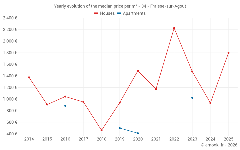Real estate price map in the municipality of Fraisse-sur-Agout, choose a section to see transactions by parcel.