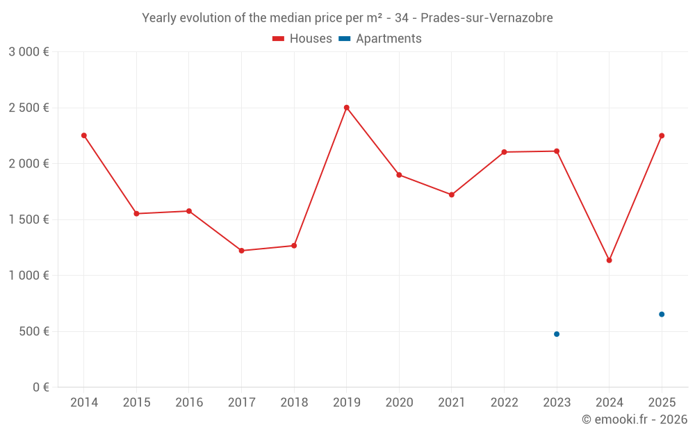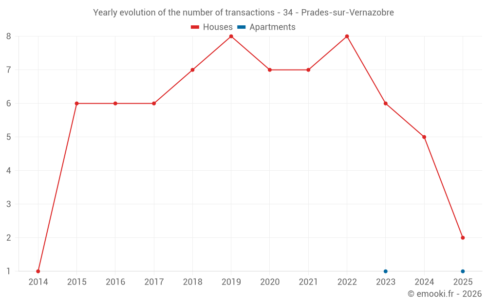 Real estate price map in the municipality of Prades-sur-Vernazobre, choose a section to see transactions by parcel.