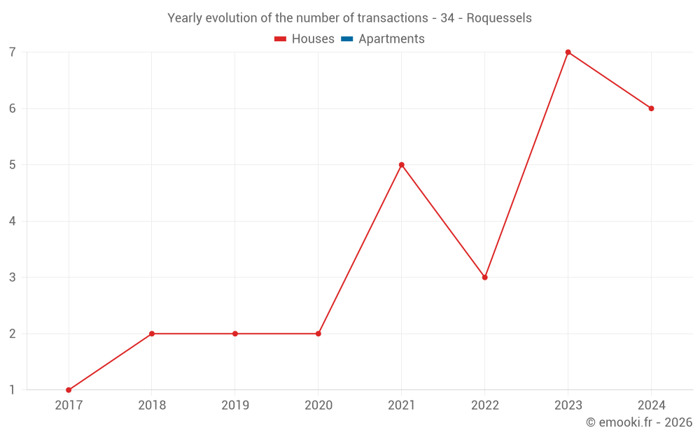 Real estate price map in the municipality of Roquessels, choose a section to see transactions by parcel.