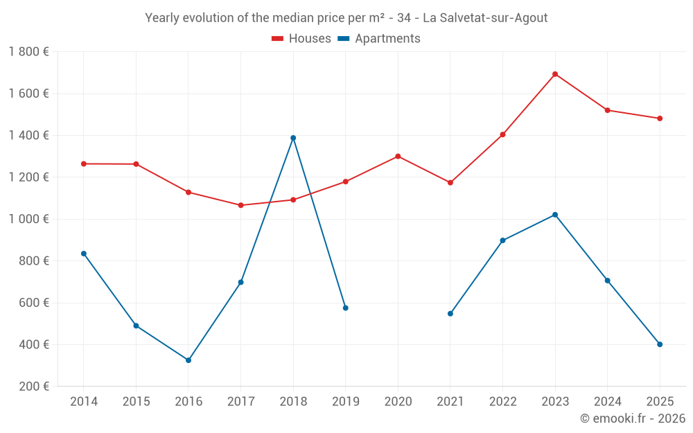 Price per m² in La Salvetat-sur-Agout