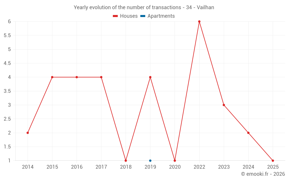 Real estate price map in the municipality of Vailhan, choose a section to see transactions by parcel.