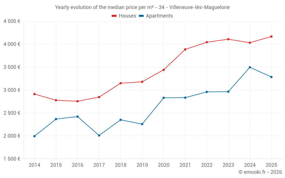 Price per m² in Villeneuve-lès-Maguelone
