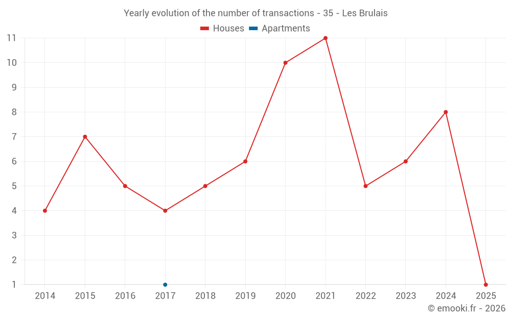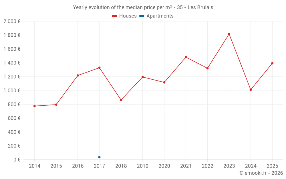 Real estate price map in the municipality of Les Brulais, choose a section to see transactions by parcel.