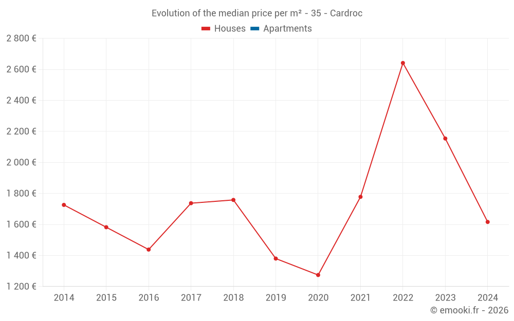 Evolution of the median price per m² of houses