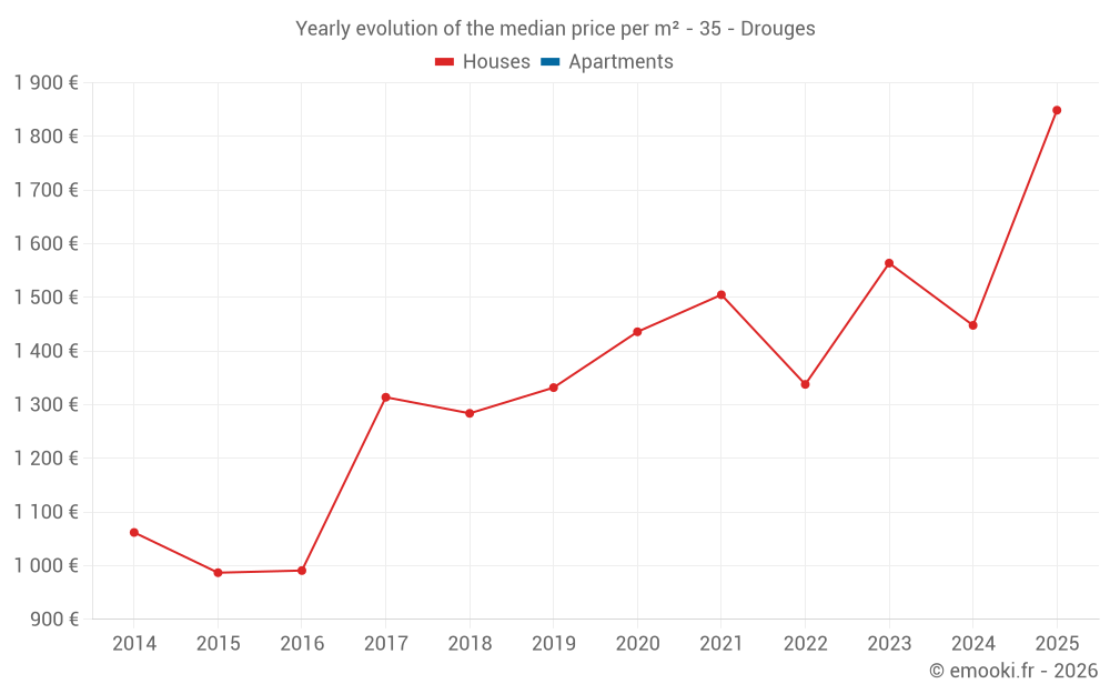 Evolution of the median price per m² of houses