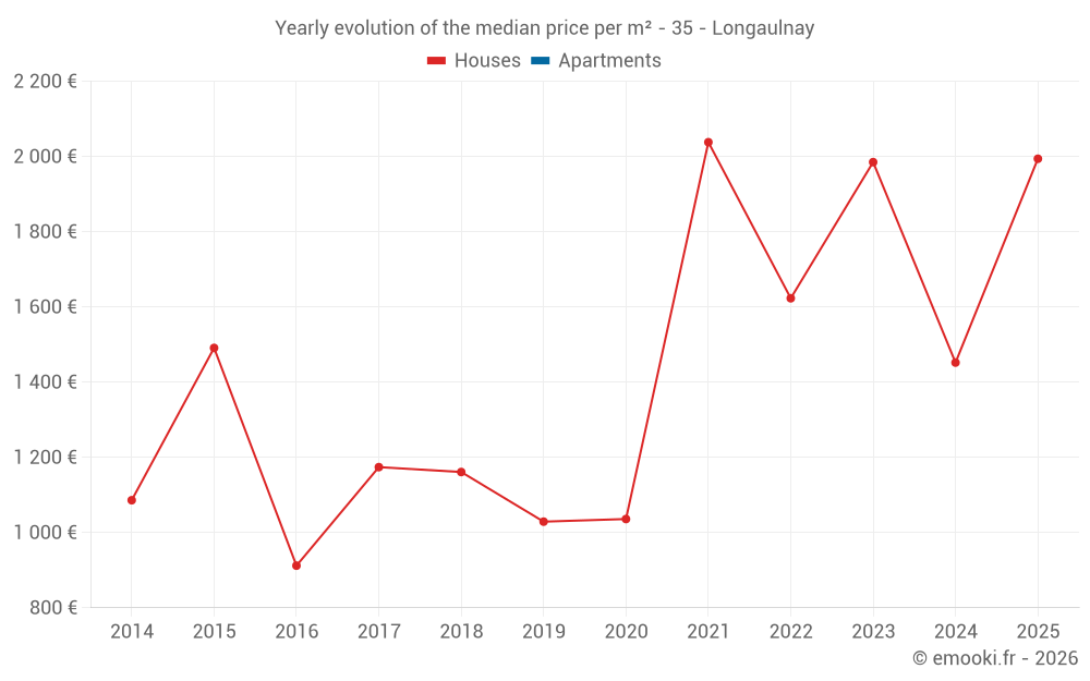 Real estate price map in the municipality of Longaulnay, choose a section to see transactions by parcel.