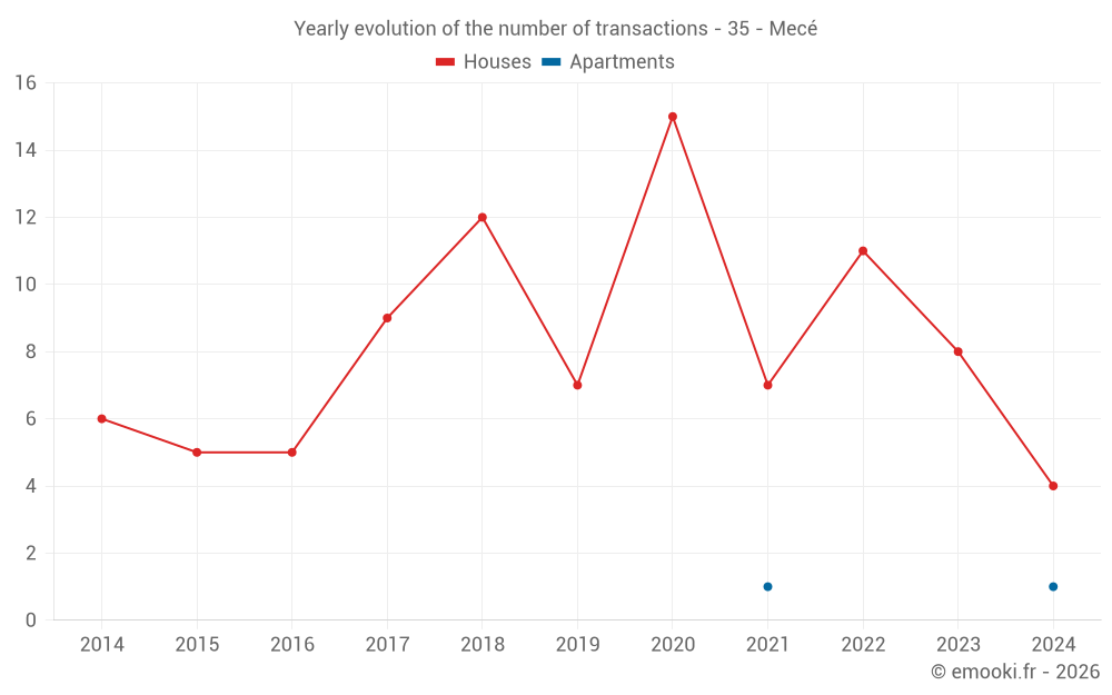 Real estate price map in the municipality of Mecé, choose a section to see transactions by parcel.