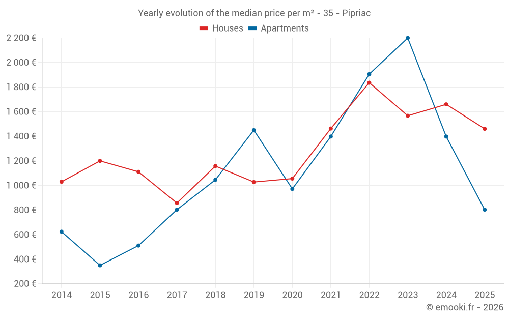 What is the price per m2 of houses in Pipriac?