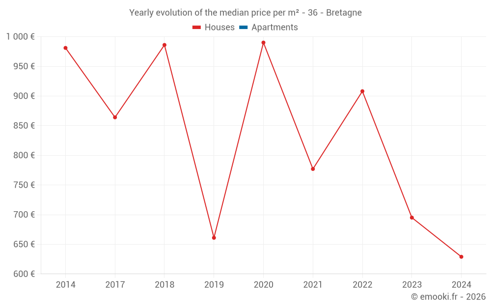 Evolution of the median price per m² of houses