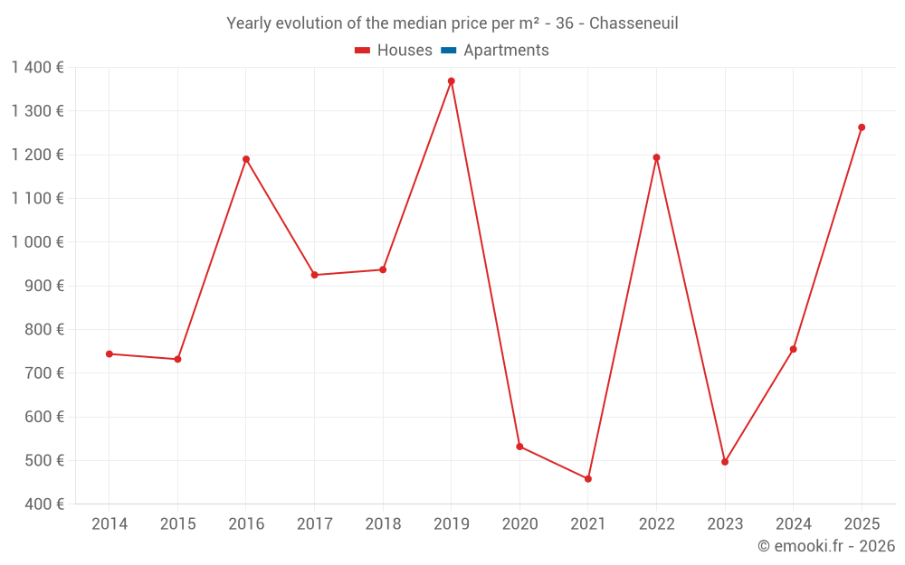 Evolution of the median price per m² of houses