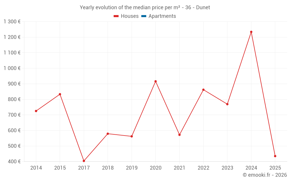 Real estate price map in the municipality of Dunet, choose a section to see transactions by parcel.