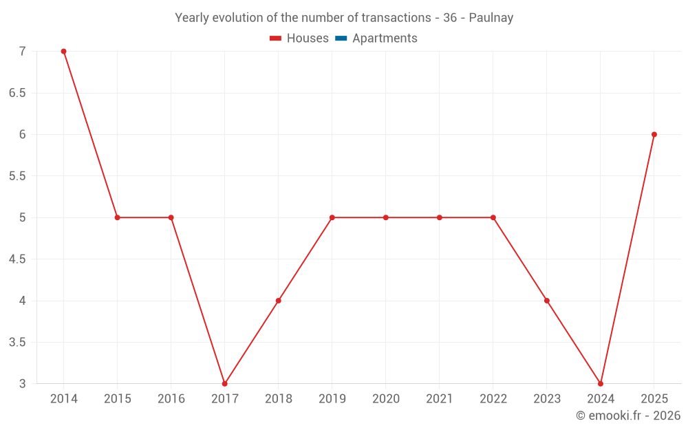 Real estate price map in the municipality of Paulnay, choose a section to see transactions by parcel.