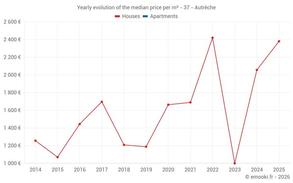 Real estate price map in the municipality of Autrèche, choose a section to see transactions by parcel.
