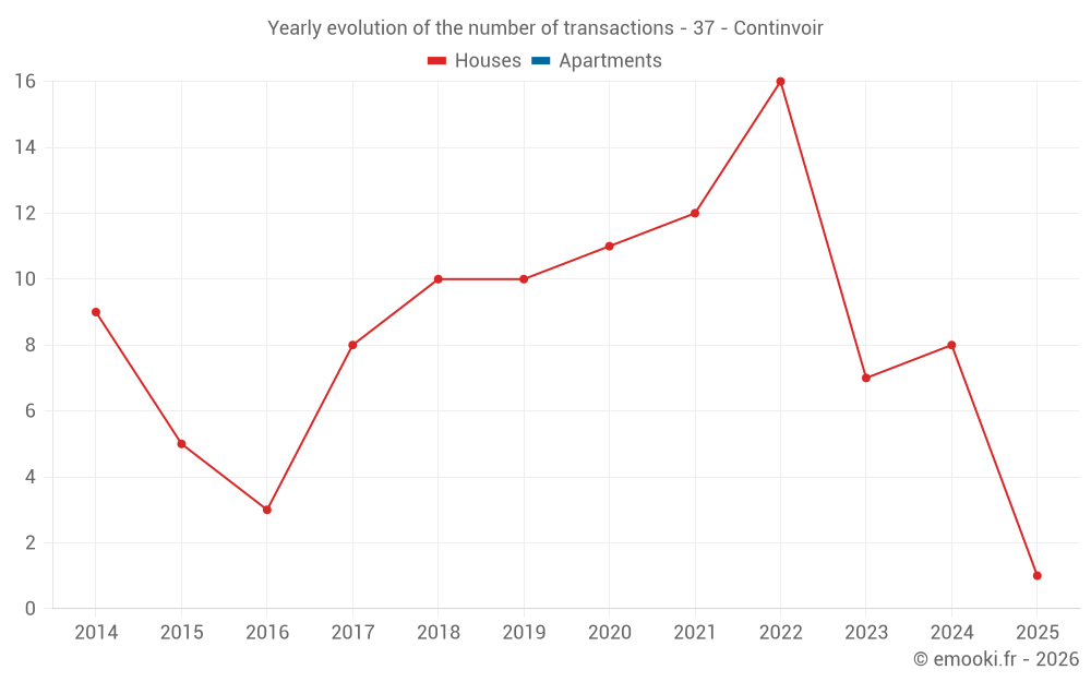 The median price on the 14 house transactions of the last 24 months in the municipality of Continvoir was 1 290 € per square meter for a median property value of 109 000 €. Over this period, 60% of transactions were between 809 and 1 516 € per square meter (from the 2nd to the 8th deciles).