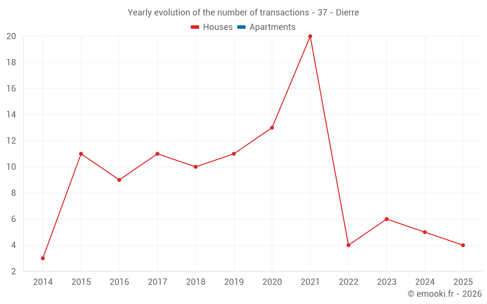 Real estate price map in the municipality of Dierre, choose a section to see transactions by parcel.