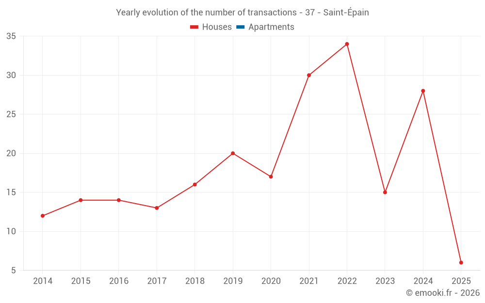 The median price on the 29 house transactions of the last 12 months in the municipality of Saint-Épain was 1 679 € per square meter for a median property value of 150 000 €. Over this period, 60% of transactions were between 1 016 and 2 039 € per square meter (from the 2nd to the 8th deciles).