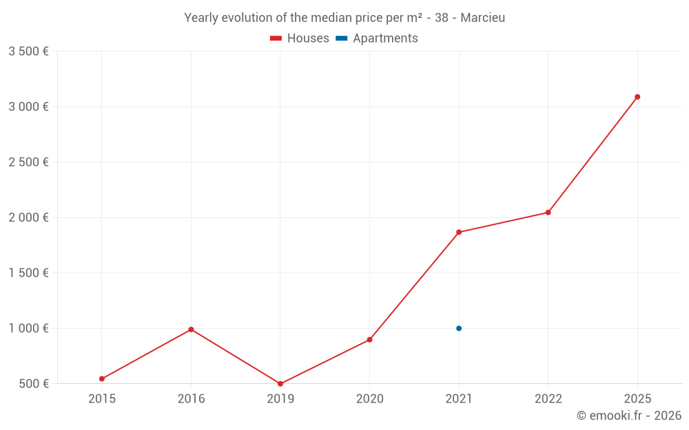 Real estate price map in the municipality of Marcieu, choose a section to see transactions by parcel.