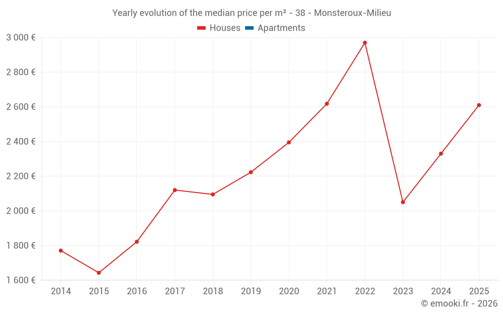 Evolution of the median price per m² of houses