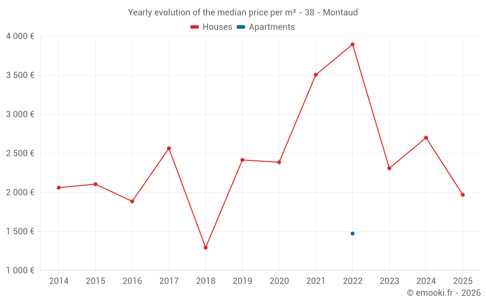 Evolution of the median price per m² of houses