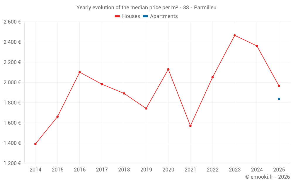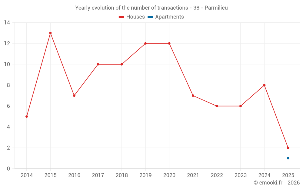 Real estate price map in the municipality of Parmilieu, choose a section to see transactions by parcel.