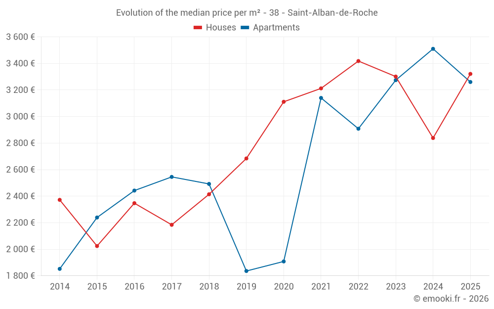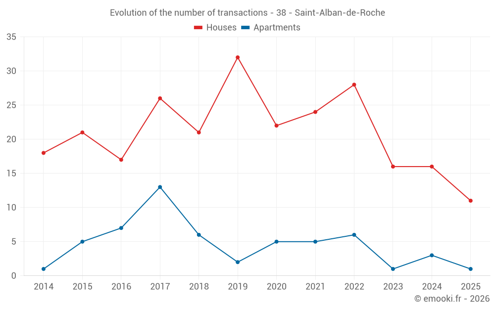 Median price on the 21 transactions of the last 12 months.