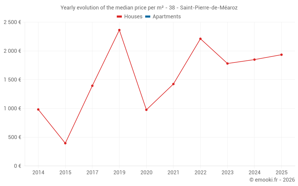 Evolution of the median price per m² of houses