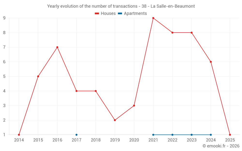 Warning, last year incomplete. Projections made based on the proportions between semesters of the previous year at the departmental/national level and by type of property.