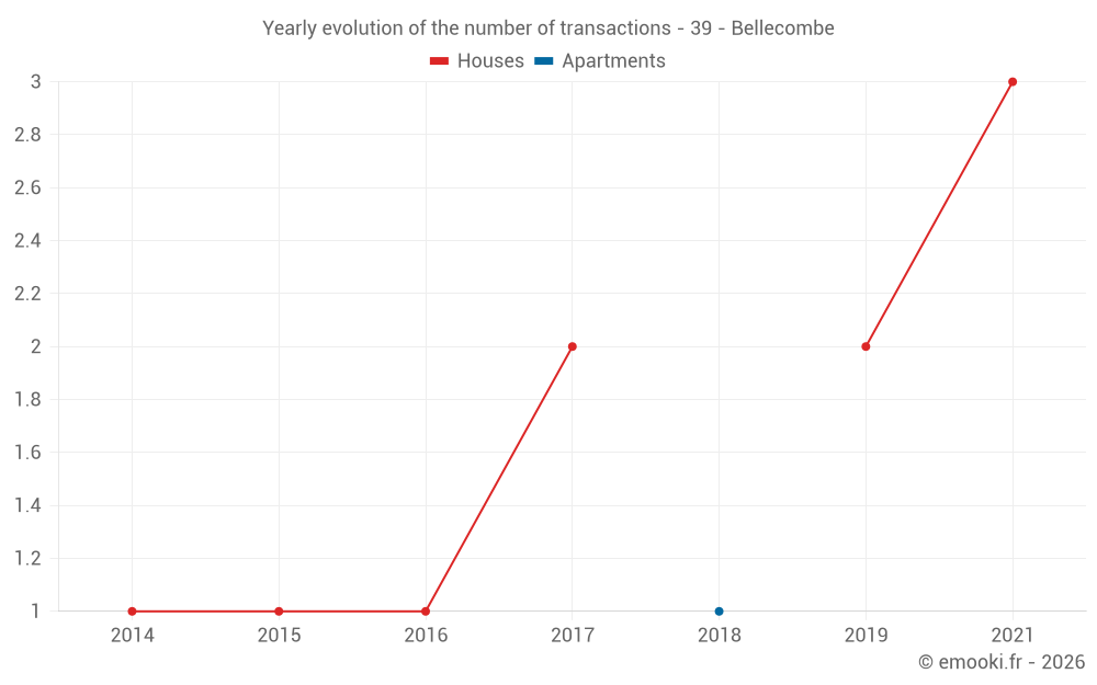Real estate price map in the municipality of Bellecombe, choose a section to see transactions by parcel.