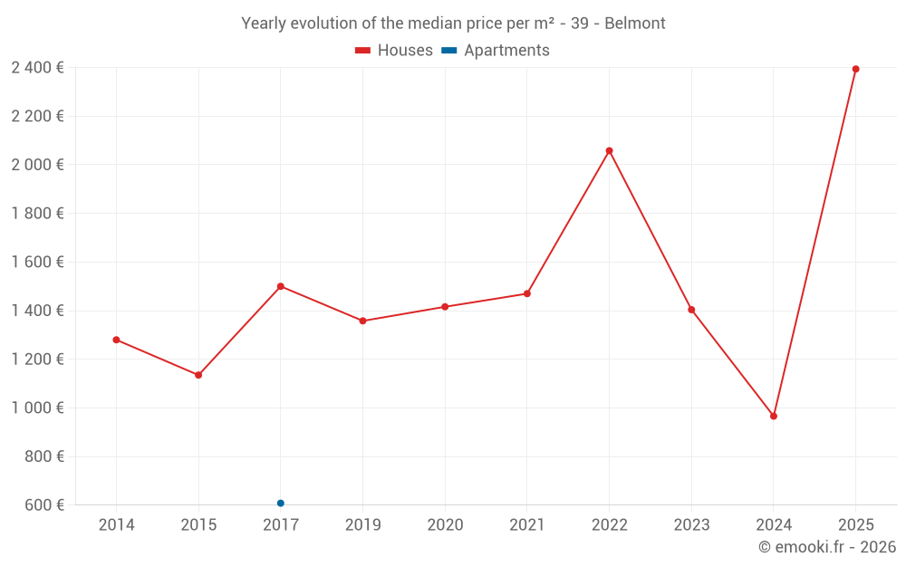 Real estate price map in the municipality of Belmont, choose a section to see transactions by parcel.