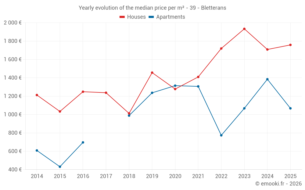 What is the price per m2 of houses in Bletterans?